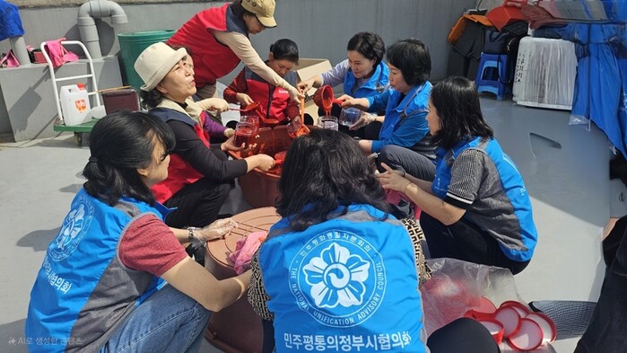 민주평화통일자문회의 의정부시협의회가 23일 경기 의정부시 봉사회관에서 북한이탈주민과 함께 ‘K-소스 쿠킹 클래스’를 개최했다. 사진은 참여자들이 고추장 담그는 모습. (사진=의정부시청 제공)