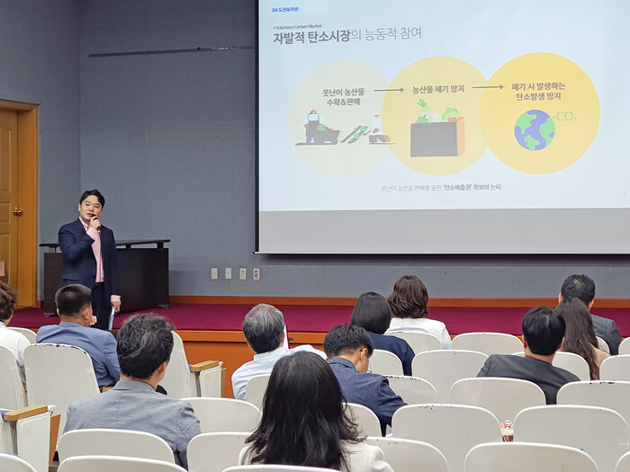 친환경 못난이농산물 구독 플랫폼 ‘예스어스’를 운영하고 있는 ㈜올투딜리셔스의 정한석 대표가 지난 4월 21일 충북도청이 주관한 충청북도 먹거리위원회 포럼에서 ‘못난이농산물 소비 활성화 방안’을 주제로 강연을 진행했다고 밝혔다.