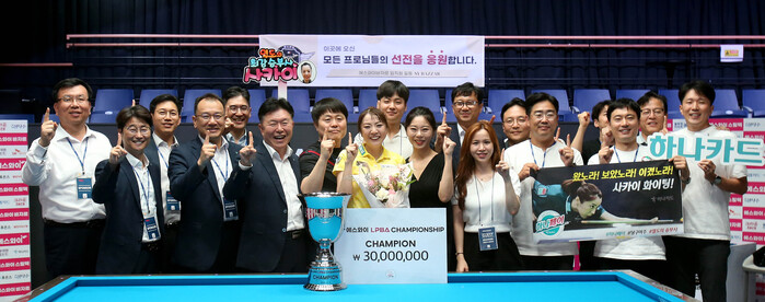 지난 4일 저녁 경기도 고양시 킨텍스 PBA 스타디움에서 벌어진 이번 ‘에스와이 LPBA 챔피언십’ 결승전에서 김민아 선수(NH농협카드)를 세트 스코어 4-2(8-11, 11-10, 4-11, 11-0, 11-8, 11-6)로 승리를 거두며 프로 데뷔 첫 우승컵과 상금 3000만원을 획득했다.