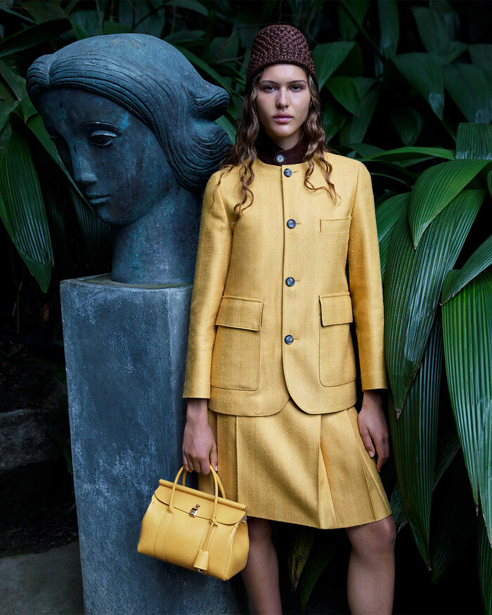 전반적으로 세련되면서도 편안한 느낌은 메종의 100년 역사와 유산을 기리는 2025 S/S 컬렉션의 중심 소재인 리넨의 바스락거리는 상쾌함으로 더욱 강조된다. 로로피아나 여름 패브릭의 정수이자 편안함, 가벼움, 느긋함의 동의어인 리넨은 메종 특유의 장인정신으로 해석되고 로로피아나의 가보와 같은 섬유들과 예술적으로 혼합되었다.