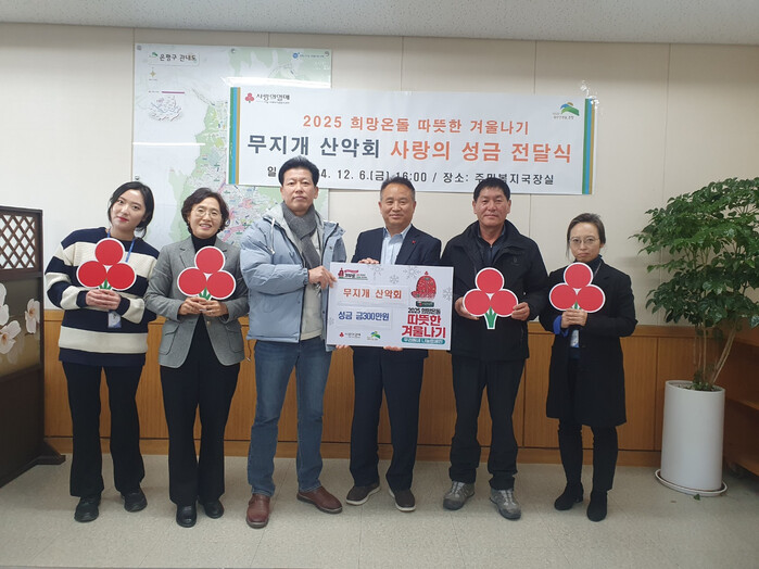 무지개 산악회는 이날 성금 3백만 원을 전달했고, 성금은 나눔네트워크 사업을 통하여 관내 저소득 가구에 전달된다.