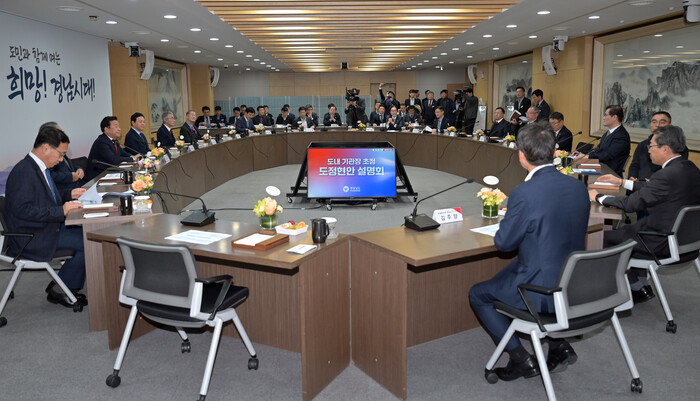 이날 간담회는 김진부 도의회의장을 비롯해 박종훈 도교육감, 이용균 창원지방법원장, 김성훈 창원지방검찰청 검사장, 권순기 경상국립대학교 총장, 김종묵 제39보병사단장, 장일현 부산지방국세청장 등 도내 행정과 사법, 군ㆍ경, 대학, 언론, 경제계를 대표하는 기관장 16명이 참석했다.