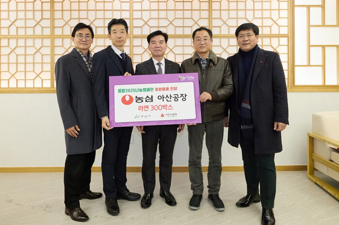[아산=박명수 기자] 충남 아산시가 최근 ㈜농심 아산공장으로부터 '희망2025나눔캠페인' 라면 300박스를 후원받았다.
