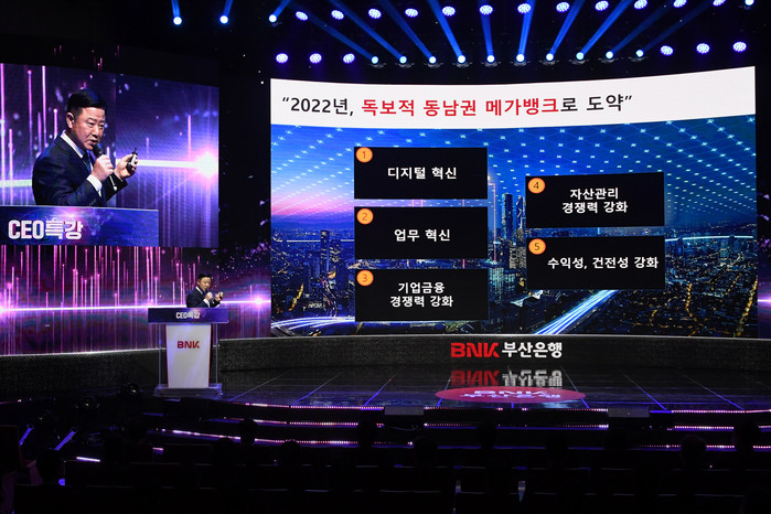 부산은행 안감찬 은행장은 이날 CEO 특강에서 “2022년은 동남권 메가뱅크로 도약하기 위한 매우 중요한 시기이다”라고 강조하며, “앞으로 3대 핵심과제인 디지털 혁신과 업무 혁신, 기업금융 확대와 함께 자산관리 기능을 강화해 양적 성장은 물론 건전성·수익성 관리를 통한 질적 성장을 이뤄내겠다”고 전했다.