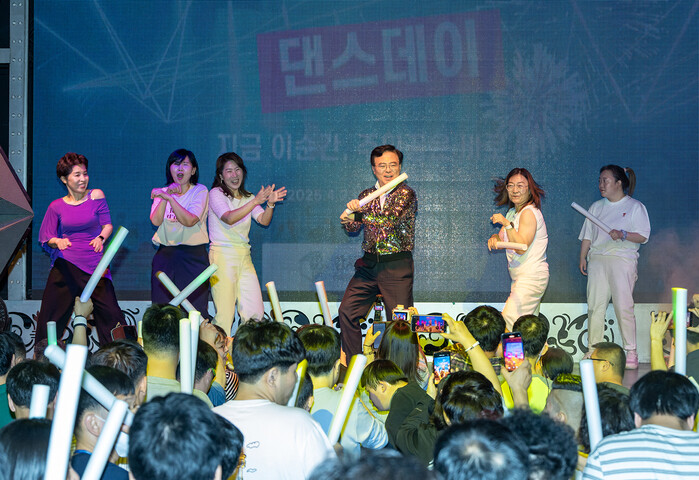 반짝이 옷을 입고 춤꾼으로 변신한 진 구청장은 장애인 가족과 함께 두 차례나 무대에 올라 깜짝 공연을 펼쳤다. 야광봉을 들고 무대를 휘저으며 현장 분위기를 이끌었다.