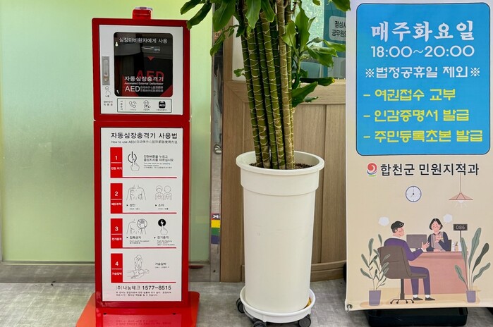 김윤철 합천군수는 “자동심장충격기를 확대 설치해 갑작스러운 심정지 환자 발생시 신속한 대응으로 청사를 방문하는 군민들과 직원들의 생명을 보호하는 데 큰 역할을 할 것으로 기대된다”며 “군민과 함께하는 안전한 합천을 만들기 위해 최선을 다하겠다”고 전했다.