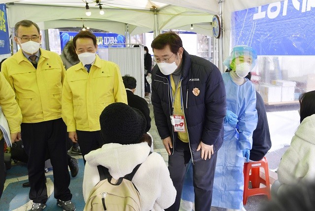 [광주=정찬남 기자] 이용섭 광주광역시장은 설 명절을 앞두고 시민들의 건강하고 안전한 연휴를 위해 관내 선별진료소 2곳을 찾아 코로나19 새 방역체계 등을 점검했다.
