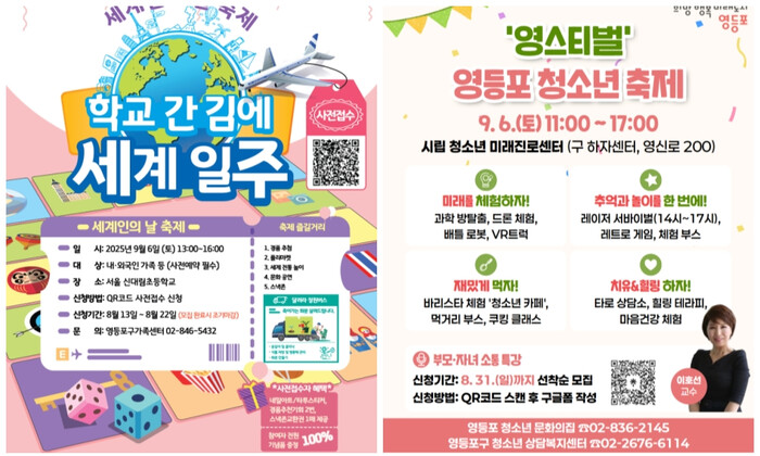 [시민일보 = 여영준 기자] 영등포구(구청장 최호권)가 오는 6일 ‘다문화축제’와 ‘청소년축제’를 개최해 세대와 문화를 잇는 소통의 장을 마련하고, 지역사회에 활기를 불어넣는다고 밝혔다.