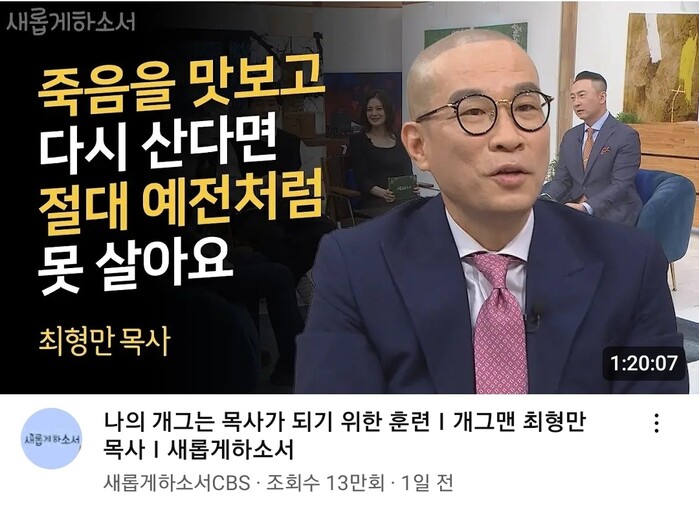 개그맨 출신 최형만 목사는 지난 5월 1일 ‘새롭게 하소서’ 토크쇼에 출연을 하며 CBS 새롭게 하소서 유튜브에 업로드 되면서 13만회 조회수를 보이며 주목을 끌고 있다.