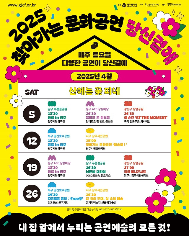 ‘2025년도 찾아가는 문화공연’ 사업은 광주시의 시민 체감형 문화정책 실현의 하나로, 광주예술의전당(전당장 윤영문)과 협력하여 추진된다.