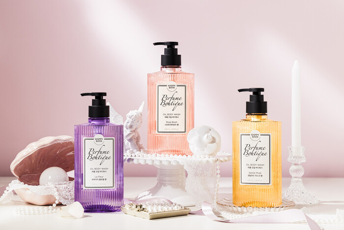 프리미엄 향료를 블렌딩해 은은하면서 풍부한 잔향을 자랑하는 퍼퓸부티크 라인은 로즈 블러쉬, 라 플레르, 상탈 머스크 등 총 세 가지 향으로 바디워시 3품목과 바디로션 2품목을 선보인다.