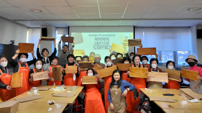 [시민일보 = 이대우 기자] 서대문구 북가좌1동(동장 김종일)은 최근 동 지역사회보장협의체(위원장 김상윤)가 관내 어르신을 위한 마을복지계획의 하나로 ‘뚝딱뚝딱, 내 손으로 도마만들기’ 프로그램을 진행해 많은 호응을 받았다고 밝혔다.