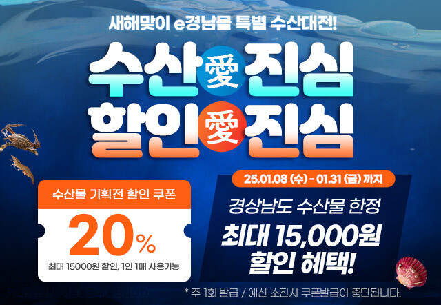 이번 기획전에는 도내 58개 업체의 수산물 및 수산가공(굴ㆍ가리비ㆍ멸치 등) 797개 품목을 주 1회 할인쿠폰(20%) 발행을 통해 최대 1만5000원 할인 지원한다.