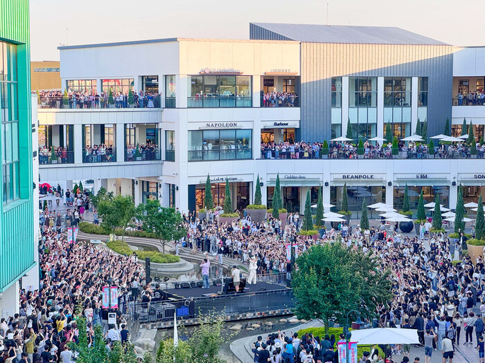 | ▲ 지난해 6월 현대프리미엄아울렛 김포점 수변광장 야외무대에서 진행된 슈퍼스테이지 콘서트에 수많은 고객들이 공연을 즐기고 있다. (사진=현대백화점 제공) |
