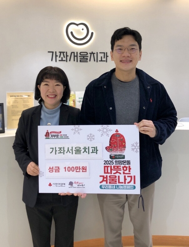 성모정형외과 원지윤 원장은 “우리 지역의 어려운 분들께 적게나마 도움을 드릴 수 있어 보람되다”고 소감을 전했으며, 가좌서울치과 정영현 원장도 “작은 정성이지만 겨울날 이웃분들께 사랑과 희망의 온기가 되길 바란다”고 말했다.