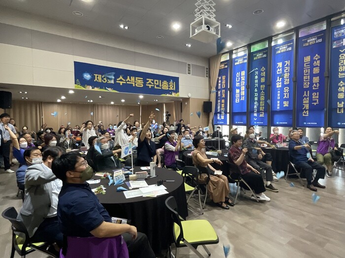 주민총회는 수색동 주민들의 삶의 질 향상과 복지 증진을 위해 주민이 직접 2024년 추진할 사업을 채택하기 위해 의견을 모으는 장이다. 수색동 주민자치회 각 분과에서 발굴한 9개의 의제 중 일반 프로그램 사업은 4개로, 이 중 2개의 우선순위 의제를 선정, 시설·환경·동특화 사업 5개는 찬반을 선정하기 위해 마련됐다.