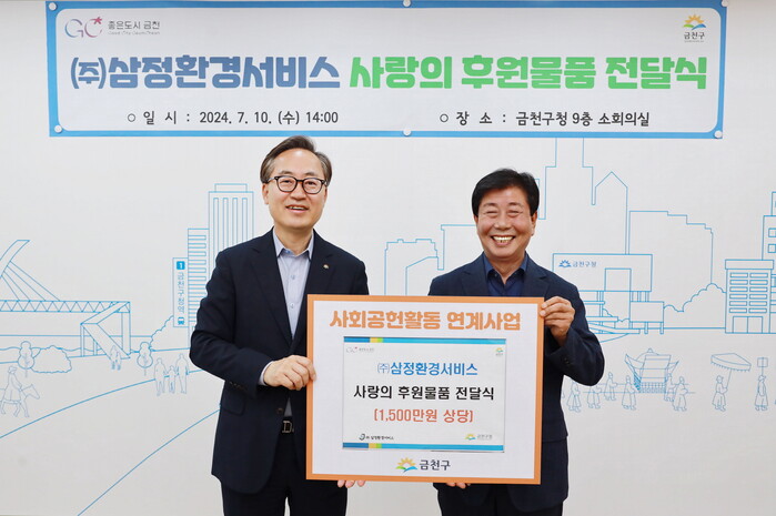 삼정환경서비스는 2022년 라면 250박스와 현금 500만원을 후원했으며, 2023년 금천구 따뜻한 겨울나기 사업에 현금 300만 원, 올해 상반기 설맞이 행복나눔 꾸러미 나눔 행사에 500만 원 상당의 물품을 기부했다.