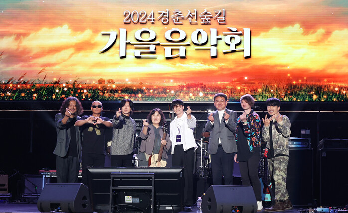오승록 서울 노원구청장이 최근 서울과학기술대학교 종합운동장에서 열린 ‘2024 경춘선숲길 가을음악회’ 행사에 참석했다. 사진은 오 구청장(오른쪽 세번째)이 출연진들과 기념 촬영하는 모습. (사진=노원구청 제공)