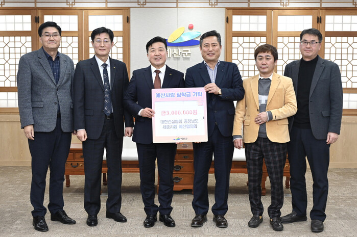[예산=김의석 기자] 충남 예산군은 대한건설협회 충남도 및 세종시회 예산협의회가 예산사랑장학회에 장학금 300만원을 기탁했다고 6일 밝혔다.