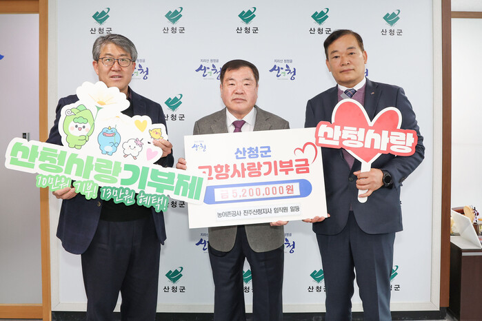 이승화 군수는 “산청군의 발전을 위해 고향사랑기부에 동참해줘 감사하다”며 “앞으로도 주민들의 요구사항을 적절히 반영해 주민이 만족하는 사업을 추진해 달라”고 전했다.