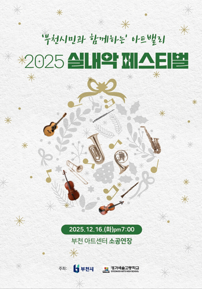 공희정 부천시 평생교육과장은 “부천아트밸리 프로그램을 통해 성장한 학생들이 전문 공연장에서 시민과 예술적 성과를 나누는 자리를 마련하게 돼 뜻깊게 생각한다”며 “연말을 맞아 따뜻한 음악과 함께 부천시 문화예술교육의 의미를 함께 나누는 시간이 되길 바란다”고 말했다.