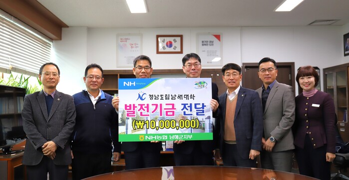 NH농협은행 남해군지부는 2002년부터 꾸준히 남해대학을 후원해 왔으며 현재까지 총 2억여원의 발전기금을 전달했다.