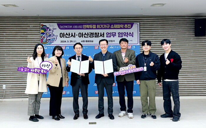 이번 협약은 보건복지부가 전국 5개 지자체를 선정해 추진하는 '연락 두절 위기가구 소재파악 시범사업'에 따른 것으로, 지난 1월 아산시가 선정됐다.