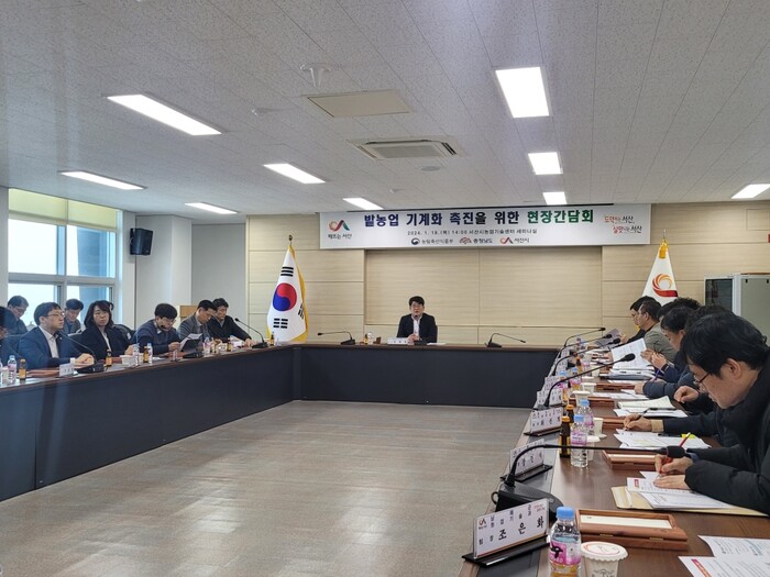 [서산=최복규 기자] 충남 서산시가 지난 18일 서산시 농업기술센터에서 권재한 농업혁신정책실장 및 현장 관계자들과 함께 밭 농업 기계화 촉진을 위한 간담회를 개최했다.