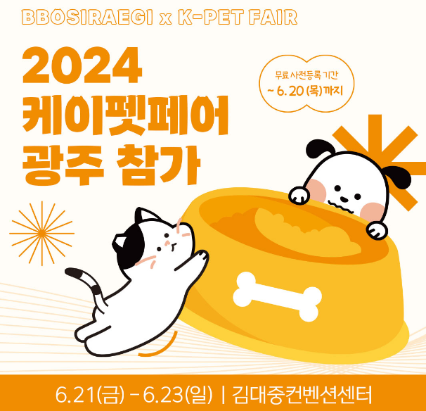 [시민일보 = 이창훈 기자] 대상펫라이프의 반려동물 용품 브랜드 '뽀시래기'가 오는 21~23일 광주 김대중컨벤션센터에서 열리는 '2024 케이펫페어 광주'에 참가한다.
