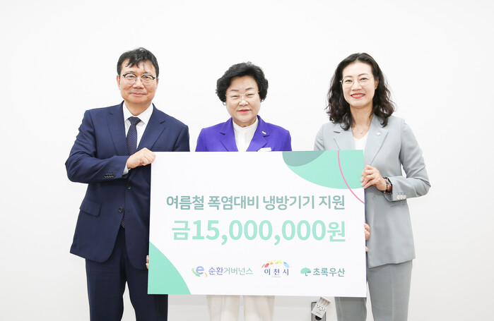 [시민일보 = 민장홍 기자] 경기 이천시는 7일 E-순환거버넌스가 저소득 아동 가정의 쾌적한 여름나기를 지원하기 위해 현금 1500만원을 초록우산 어린이재단을 통해 이천시 드림스타트에 기부했다고 8일 밝혔다.