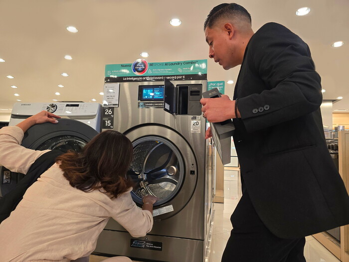 | ▲ 멕시코 수도 멕시코시티에 위치한 Liverpool 백화점에서 고객들이 삼성전자 올인원 세탁건조기 '비스포크 AI 콤보'를 체험하고 있다. (사진=삼성전자 제공) |