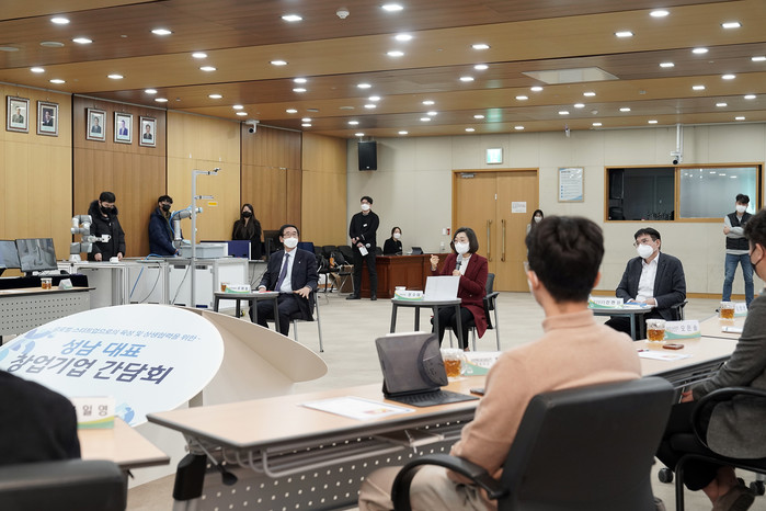 시는 성남산업진흥원, 경기창조경제혁신센터와 함께 관내 창업기업의 우수 제품 판로를 확대하기 위해 12월 21일 오후 2시 성남시청 한누리에서 ‘성남 대표 창업기업 간담회’를 개최했다.
