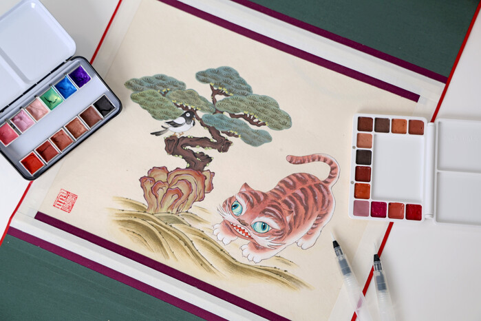 특별 참여한 김미연, 신지혜 민화 작가는 '호작도'를 주제로 작품을 선보였다.