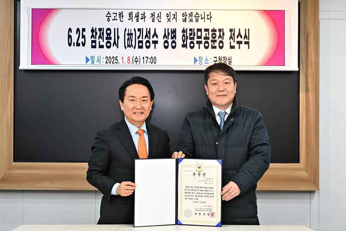 [시민일보 = 이대우 기자] 서대문구(구청장 이성헌)는 최근 구청장실에서 고(故) 김성수 상병 유가족에게 무성화랑 무공훈장을 전수했다고 14일 밝혔다.
