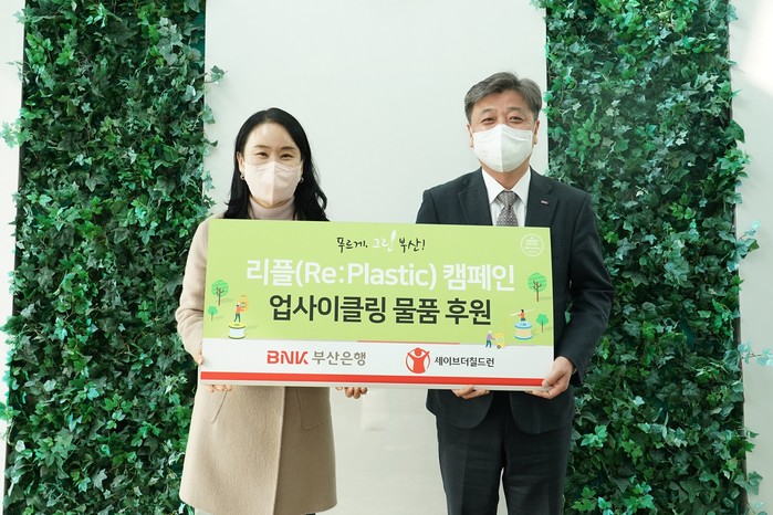 [시민일보 = 여영준 기자] BNK부산은행은 27일 오전 본점에서 ‘업사이클링 물품 후원’ 전달식을 갖고 ‘리플 캠페인(Re : Plastic)’을 통해 제작된 친환경 물품을 사회복지법인 세이브더칠드런에 기부했다고 밝혔다.