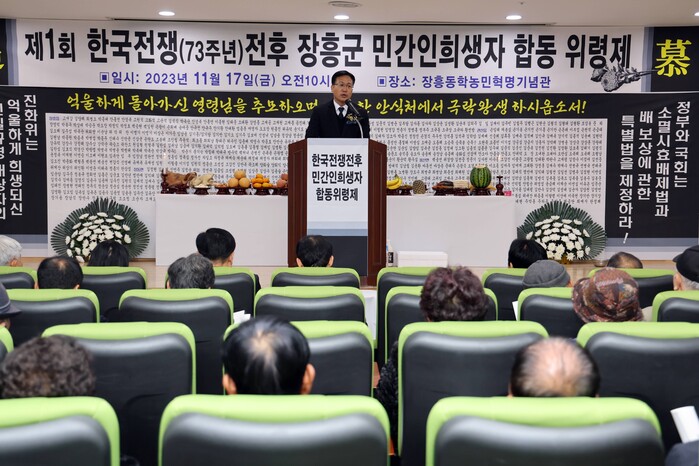 조계룡 한국전쟁전후 민간인희생자 장흥유족회 회장은 “한국전쟁이 발발한지 70여년의 세월이 지나 이제야 민간인희생자분들의 마음을 위로할 수 있게 되었다. 억울한 죽음을 잊지 않고 기억하여 희생자들의 명예가 회복되고 유가족의 아픔을 어루만질 수 있도록 앞으로도 꾸준히 위령제가 개최되었으면 한다”고 말했다.