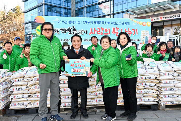 특히 동별로 수집한 폐자원 및 재활용품 매각 대금과 행복 1% 나눔 후원금 등으로 쌀을 구입해 의미를 더한다.