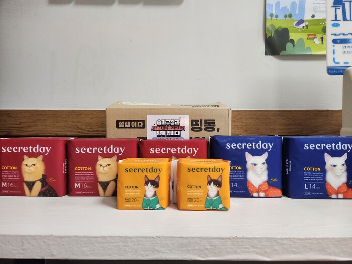 구는 생리대 등 2000만원 상당 여성용품을 구매하여 각 동주민센터에 전달했으며, 지역내 저소득층 여성 1450명에게 교부할 예정이다.