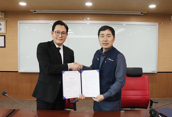 | ▲ 장례복지 협약식 후 예담라이프 신선철 대표이사와 한국노총 전국공공노동조합 인천지역본부 고기수 의장이 기념촬영을 하고 있다. |