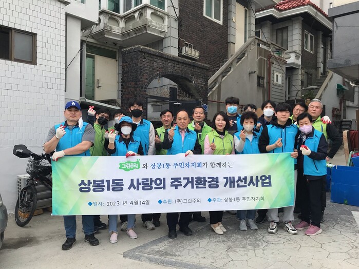 서울 중랑구 상봉1동 주민자치회는 사회적기업 (주)그린주의와 함께 저소득 가구를 찾아 ‘사랑의 주거환경 개선사업’을 진행했다. 사진은 이날 참여자들이 기념촬영을 하고 있는 모습. (사진=중랑구청 제공)