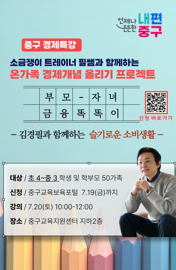 [시민일보 = 여영준 기자] 서울 중구가 오는 20일 경제 전문가 김경필 강사와 함께 '슬기로운 소비생활' 경제 특강을 개최한다.