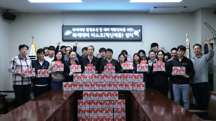 이번에 구매·비치한 화재대피용 방연마스크는 행정안전부 및 소방청 인증을 보유하고 있으며, 화재발생 시 유독성 연기 흡입을 막아 호흡기를 보호함으로써 약 15분간의 대피시간을 확보해 사상자를 예방할 수 있는 제품이다.