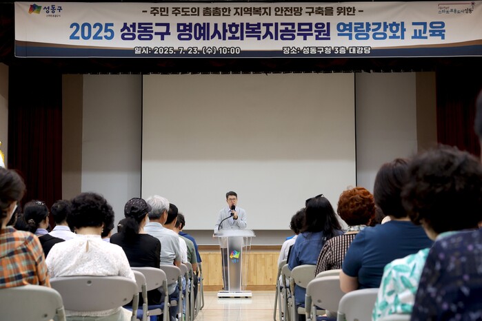 [시민일보 = 박소진 기자] 서울 성동구(구청장 정원오)가 최근 구청 3층 대강당에서 명예사회복지공무원 200여명을 대상으로 ‘명예사회복지공무원 역량강화 교육’을 실시했다고 31일 밝혔다.