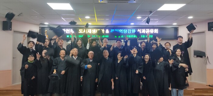 이번 성과공유회는 도시재생 주민역량강화사업으로 추진한 도시재생대학 심화과정과 주민역량강화 프로그램 6개 과정의 운영 성과를 기존의 경직된 수료식이 아니라 목공예와 셀프 페인트 등 교육 작품과 교육과정 사진을 한 눈에 볼 수 있게 전시하고 영상물을 제작해 함께 감상하는 시간을 가졌다.
