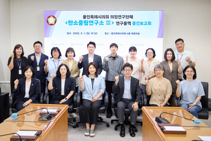 [용인=오왕석 기자] 용인특례시의회 의원연구단체 탄소중립연구소Ⅲ(대표 박희정 의원)은 1일 시의회 대회의실에서 '용인시 기후불평등 해소 정책대안' 연구용역의 중간보고회를 개최했다.