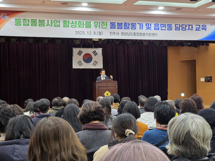 이날 교육은 경상남도 통합돌봄지원센터장과 진주시 담당 주무관이 강의를 진행해 ▲통합돌봄 개념과 정책의 이해 ▲지역사회 조직화 사례 ▲대상별(돌봄활동가, 돌봄리더, 협력기관, 지원기관) 역할 ▲통합돌봄창구 운영 ▲사례회의 운영 등으로 구성했다.