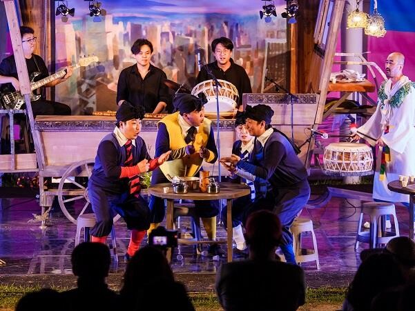 광대극 ‘당골포차’는 단군신화를 모티브로 한 창작 연희극으로 사람답지 않은 삶을 사는 현재의 우리를 포장마차라는 삶의 공간 속에서 유쾌하게 풀어낸다.