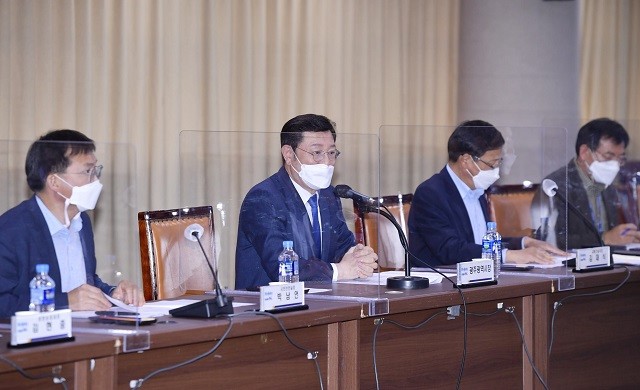 | ▲ 이용섭 광주광역시장이 11일 오후 시청 중회의실에서 요소수 부족 사태와 관련해 유관기관과 합동으로 긴급 상황점검 대책회의를 주재하고 있다./광주광역시 제공 |