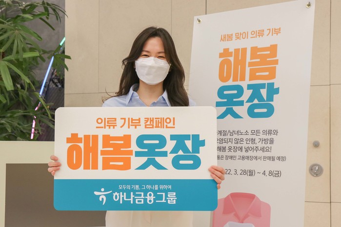 [시민일보 = 여영준 기자] 하나금융그룹은 의류 자원 제로 웨이스트에 동참하고, 장애인 일자리 창출에 기여하기 위한 의류 기부 캠페인, '해봄옷장'을 오는 4월8일까지 실시한다고 밝혔다.