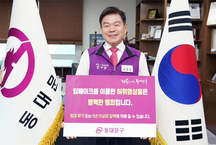 [시민일보 = 이대우 기자] 이필형 서울 동대문구청장이 지난 15일 ‘딥페이크 범죄예방 챌린지’에 동참, 첨단기술을 범죄에 악용하는 행위를 멈춰줄 것을 촉구했다.